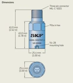 CMSS 793V, SKF, Piezoelectric Industrial Velocity Sensor, Straight Exit (XDCR, VEL, STD)