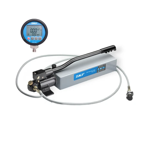 The SKF TMJL 50 DU is mainly intended for larger SKF Hydraulic Nuts and SKF OK Coupling hydraulic chambers, but is also suitable for applications where a maximum pressure of 50 MPa (7 250 psi) is required. Supplied with a digital pressure to enable the SKF Drive-up Method to be used for mounting rolling elment bearings.